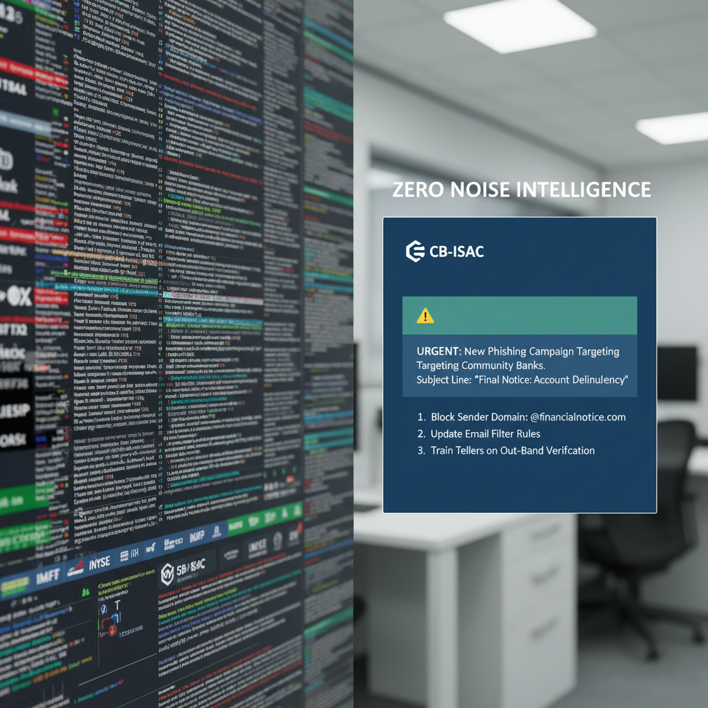 The biggest complaint community banks have with global intelligence feeds is alert fatigue. They receive warnings about SWIFT attacks on central banks or DDoS attacks on Wall Street trading platforms that are irrelevant to them.